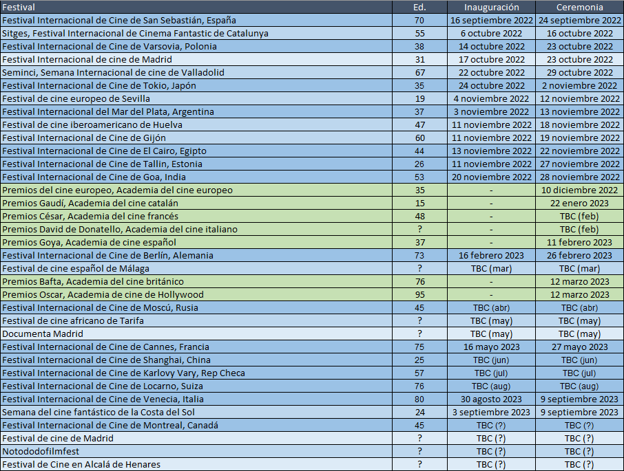 Incluimos aquí los festivales mas relevantes en el ámbito nacional